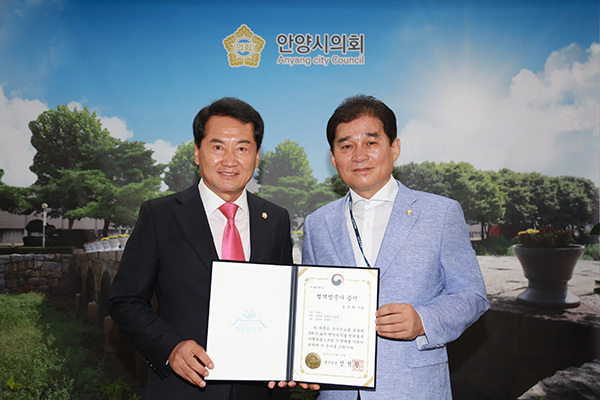 안양시의회 음경택 의원이 지난 19일 병무청으로부터 대한민국 병역명문가문으로 선정돼 병역명문가 증서와 감사패를 받았다.