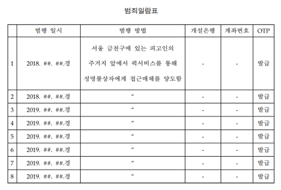 A씨의 계좌 양도 범행 일지(서울남부지방법원 판결문)