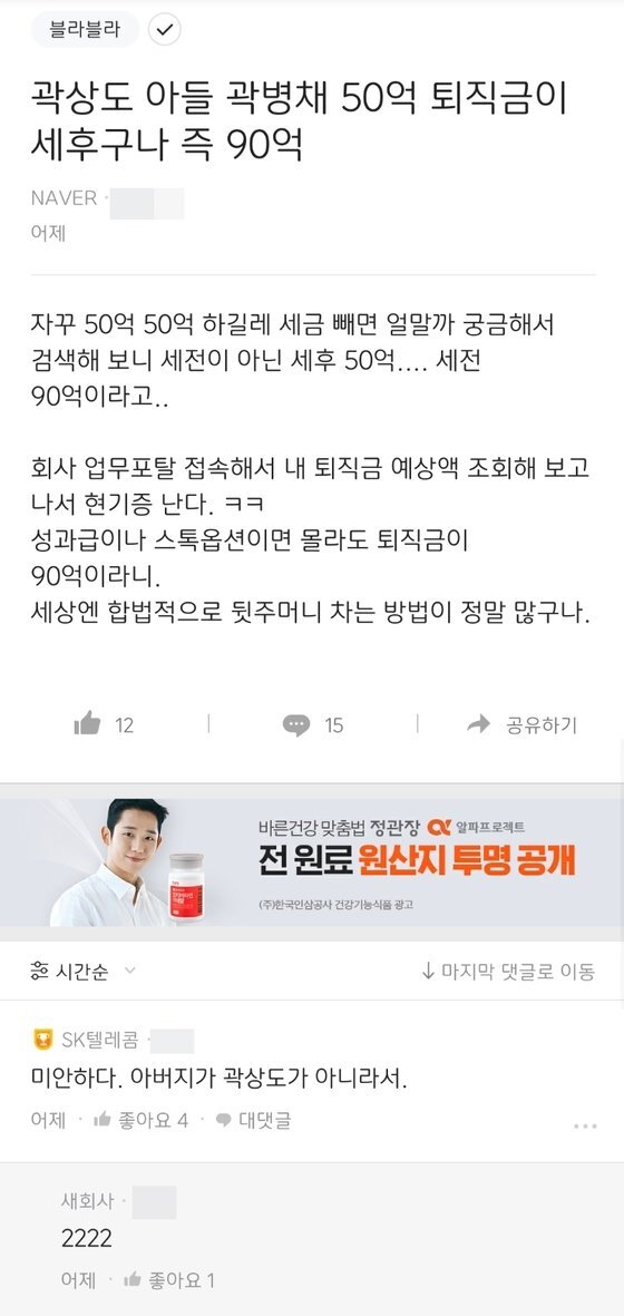 곽씨가 장문의 글을 통해 “50억 원은 회사에서 중요 업무를 수행한 정당한 대가이며 부당한 이익 취득이 아니다”라는 점을 거듭 강조했지만, 이를 지켜보는 직장인들의 반응은 싸늘하기만 하다..