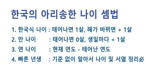 한국식 나이 계산법은 오색빛깔 난처한 상황을 양산합니다.